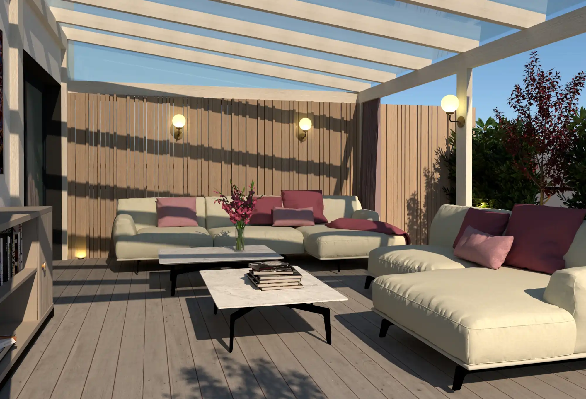 Nowoczesny taras – Pergola drewniana z dachem z poliwęglanu litego