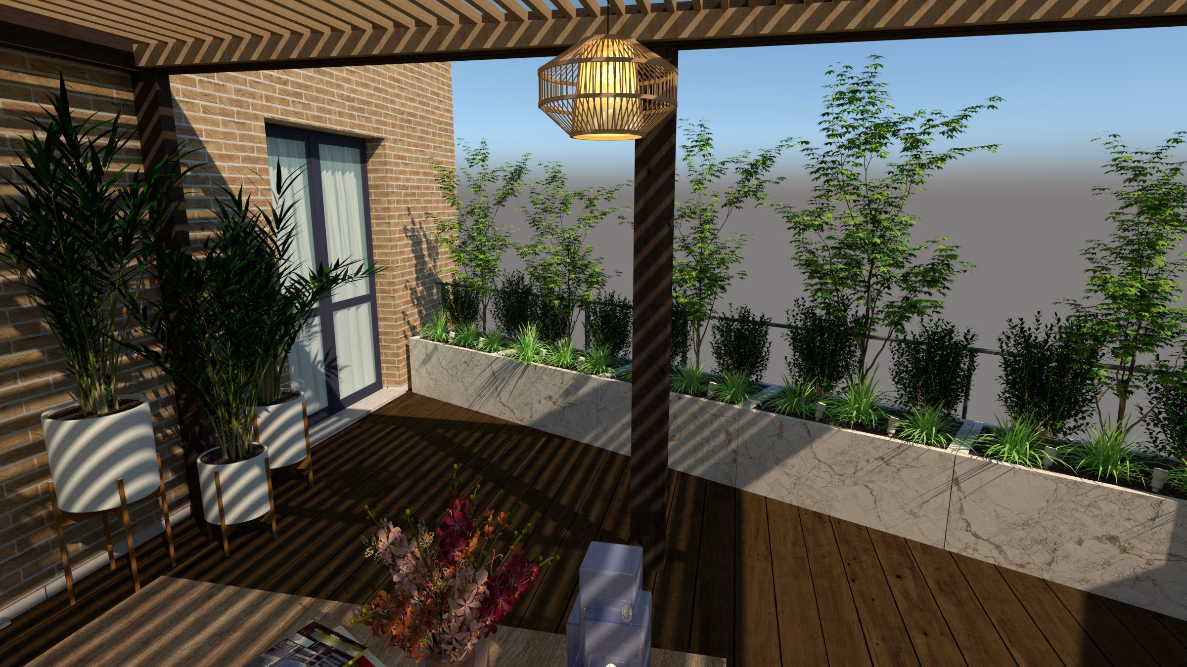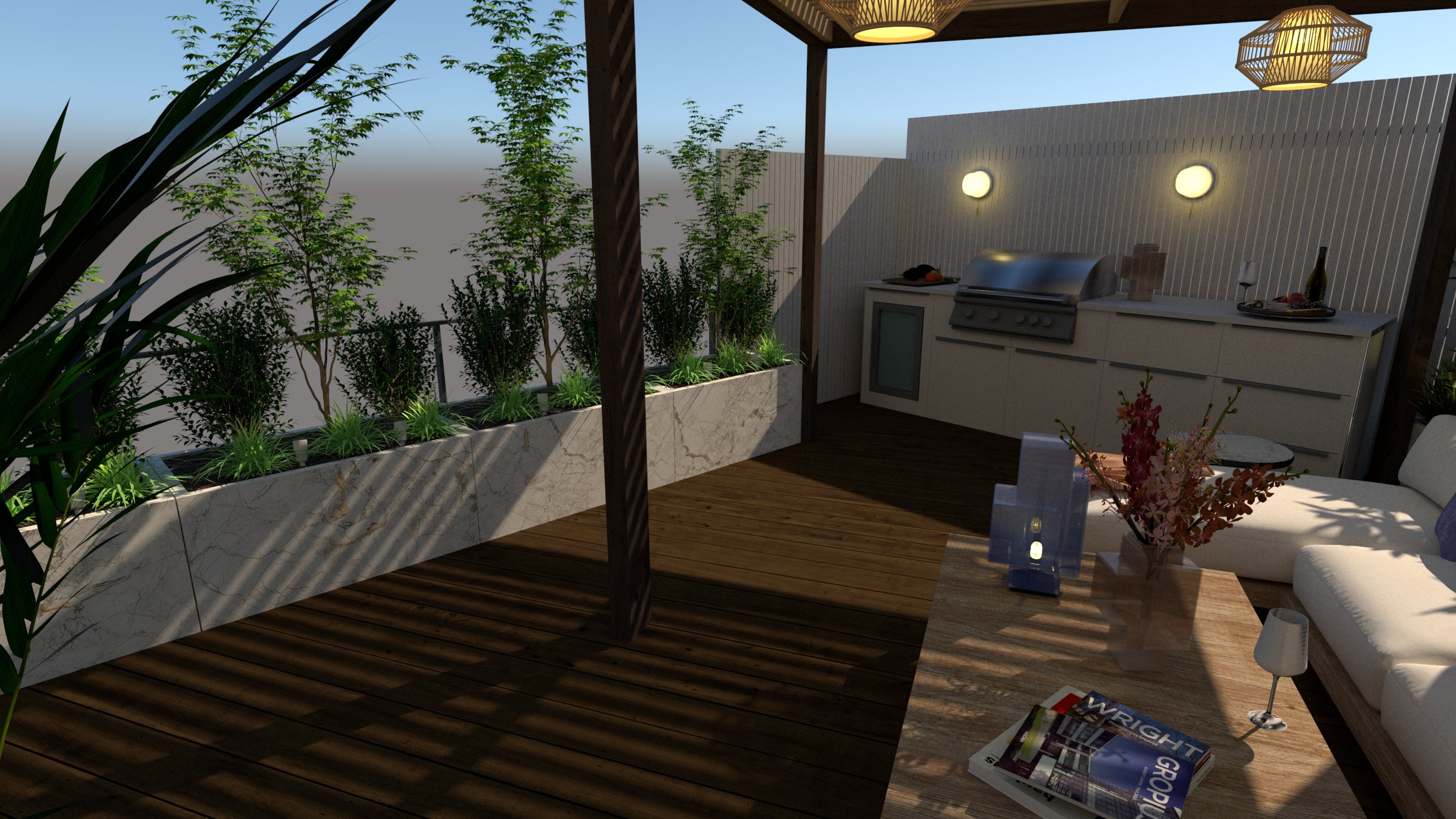 Kiedy po raz pierwszy odwiedzaliśmy to miejsce, taras był praktycznie pusty – jedynie jego powierzchnia pokryta była szarym gresem. Słowem: zastaliśmy wyeksponowaną, pustą, nieużywaną szarą pustynię. Nasz klient przyznał, że choć uwielbia gotować, dotąd nie miał warunków, by zaprosić przyjaciół na wspólnego grilla. „Chcę stworzyć miejsce, które połączy kuchnię, salon i ogród – wszystko w jednym, na świeżym powietrzu” – powiedział podczas pierwszej rozmowy.